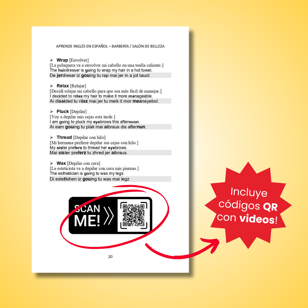 COMO UN COMPLEMENTO esta guía incluye códigos QR con videos HECHOS POR NOSOTROS MISMOS, donde podrás ver clases y escuchar la pronunciación de las palabras correctamente.